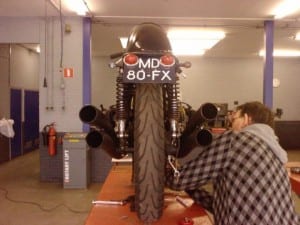Met de komst van de Yamaha (GX750) XS750 3 cilinder in ’76,zijn zijn ze zich gaan specialiserenop 3 cilinder motorfietsen. DE XSsen werden – buiten Yamaha Nederland om – direct uit Japan ingevoerd en hadden de kenmerkende spaakwielen van de eerste serie. en een 3-in-1 uitlaatsysteem.