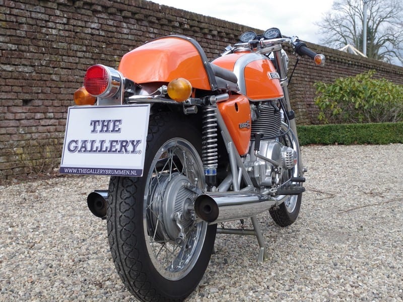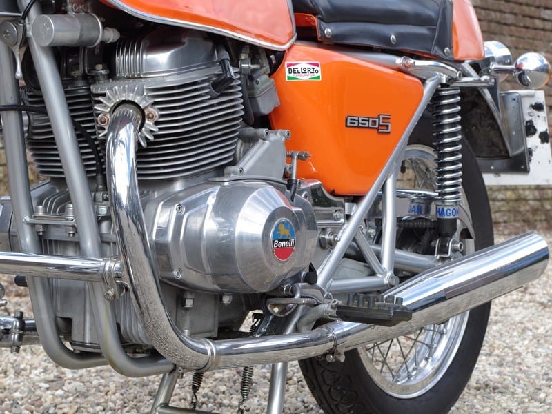 We stonden bij een Benelli Tornado 650. (1971-1975) Dat moet één van de laatste snelle, luchtgekoelde stoterstangen twins zijn geweest. Bij zijn introductie was hij wat gedateerd. Maar toen de Italianen jaren later een soort van productie op gang kregen? Toen was de Tornado ongeveer net zo actueel als paaseieren in september.