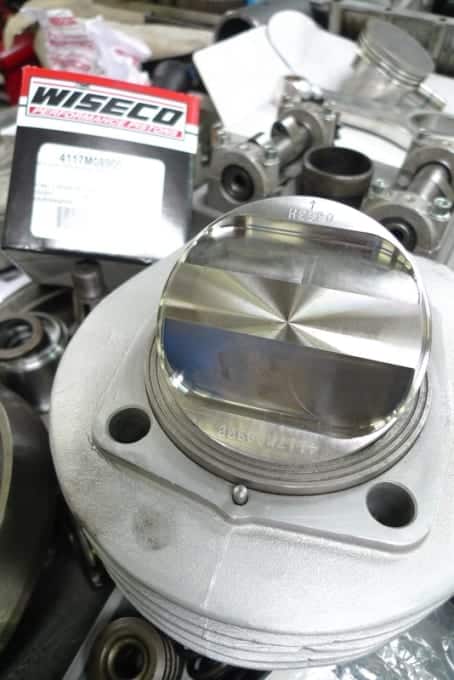 In de Bijbeldikke catalogus van Wiseco vond Jan de zuiger die voor zijn project gemaakt leek te zijn. Maar eigenlijk hoorde het onderdeel in een Honda XR 500. Het small end van de zuigerstang werd pasgemaakt op de pistonpen van de Honda. Dat verse blok moest ook van vonkjes voorzien worden. Jan zocht en vond de juiste PAL ontsteking. Het geheel werd opgebouwd met nieuwe lagers en pakkingen en fase één was zo goed als klaar.