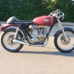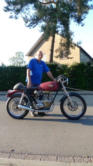 Waarschijnlijk wordt hij net zo warm metallic rood als een 1968’er BSA Lightning. Het blanke staal van de verzaagde en verlaste voetsteunen, de rem/schakelset en de kickstarter krijgen een nieuwe chromen jas. En dan? Jan kijkt dromerig voor zich uit. Er zijn alweer nieuwe bouwplannen.
