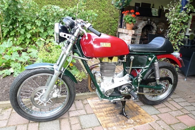 De voorlopige eindstand Intussen start Jan’s droomfiets ook koud met hoogstens twee trappen. En als hij loopt klinkt hij als een middelzware artilleriebeschieting. Op de weg is de Yawama een vlotte, wendbare en goed remmende machine. De motor is absoluut verkeersveilig en het vage idee speelt om hem bij de RDW ter keuring aan te bieden. Alleen komt er dan ‘Eigenbouw’ op het frame te staan. Geen ‘Yawama’. De race is gelopen. Het project is gelukt. Nu gaat alles weer uit elkaar omdat er nog wat detailwerk gedaan moet worden en de motorfiets zijn definitieve laklaag nog moet krijgen.