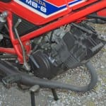 Honda17 En die verkopen gingen lekker door, want de jeugd van 16-17 bleef onder de indruk van de looks en prijs van de Honda’s. De prestaties deugden ook nog. En dat schelle tweetaktgeluid? Daar gaf niemand om. De rijwindgekoelde, membraangestuurde eencilinder tweetaktmotor van 78 cc (boring x slag: 45 mm x 49 mm) met een compressie van 7,8: 1 leverde 7,2 pk bij 6000 toeren per minuut. Het gescheiden smeersysteem waarbij de olie in een apart tankje zat, was hoogt aktueel en gaf bij alle toerentallen de juiste smering terwijl het verkolen van de uitlaatpoort en zuigerkroon voorkwam. De cilinder en cilinderkop waren van lichtmetaal. Inademen deden de Honda’s door Mikuni’s met een ronde gasschuif en een diameter van 18 mm. De laag gecomprimeerde tweetaktjes hadden natuurlijk genoeg aan normale benzine. De vonken kwamen van een CDI ontsteking en het starten gebeurde met een kickstarter. De MB- en MT familie was in 80- en 50 cc uitvoering verregaand identiek. Ze deelden het frame, de voorvork met een slaglengte van 135 mm en de achtervork met de hydraulisch gedempte, drievoudig instelbare veerpoten. Maar de Mokick – de brommer was maar half zo snel als zijn 80 cc familie.