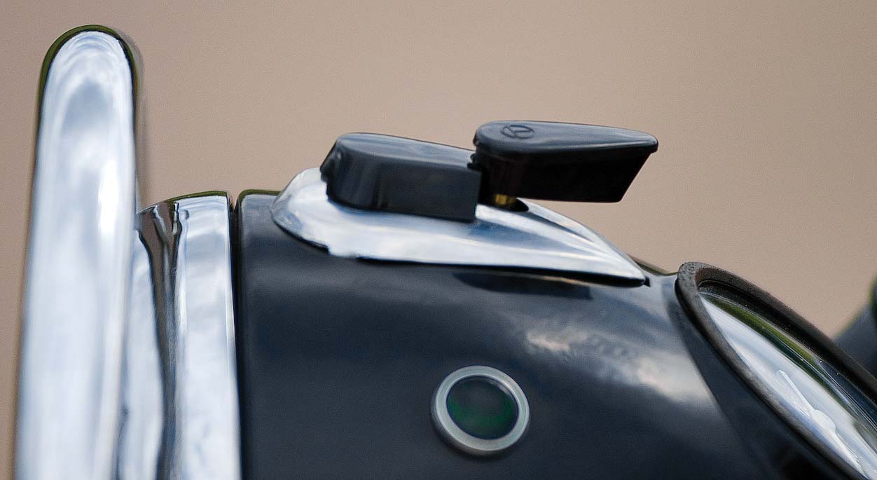 Via Ebay.de had ik inmiddels een aanbod gezien van een BK-bezitter die zijn machine voorzien had van 12 volt elektronische ontsteking. Hij bood zijn zeer zeldzame complete originele ontsteking aan. Er waren meer kapers op de kust maar ik deed het hoogste bod. De waar viel niet tegen en was zo in te bouwen. Op dezelfde manier vond ik ook twee vlakschuifcarburateurs, alweer geluk! Bij het op twee wielen zetten van de machine bleek het voorlopig gedaan te zijn met mijn geluk. De houders/klauwen van de linkerachtervering zijn gemaakt van een soort aluminium van ‘DDR kwaliteit’. Bij heel nauwkeurig kijken zag ik iets wat ik eerder over het hoofd gezien had. Een haarscheur. De samenstelling van de aluminium liet lassen niet toe. Er bleken wel replica´s te koop, maar deze waren van zo´n lelijke kwaliteit dat daar geen haar op mijn hoofd aan dacht. Zonder veel hoop zette ik een vraag op de Duitse website van bk350.de en tot mijn grote verbazing kwam er een antwoord uit Nederland. Jaap Booy, hoog in de kop van Noord-Holland was ook lid van het BK forum en had een prachtige BK met zijspan en een hele hoop onderdelen. Ik in de auto, op een zondagmiddag naar Noord-Holland. Jaap, een gezellige en sympathieke man, bleek niet alleen de koffie klaar te hebben staan, hij had ook een hele vracht reserveonderdelen. Niet alleen de klauw van de achterophanging, ook het onbrekende achterzadel (origineel Möwe) in mooie staat, de ontbrekende hendels, twee valbeugels en nog wat kleingrut veranderde van eigenaar. Bovendien waren de lak en de biezen op zijn motor nog origineel, wat mij meteen een beeld gaf van hoe mijn biezen er uiteindelijk uit zouden moeten komen te zien. Mijn geluk kon helemaal niet meer op toen Jaap ook nog eens een origineel tijdschrift bleek te hebben met foto´s van een originele exportuitvoering. Deze machines schijnen zo zeldzaam te zijn dat zelfs binnen het BK-forum niemand wist hoe ze er precies qua lak, chroom en biezen hadden uitgezien. Laat staan dat iemand er echt een had. Zelden ben ik zo gelukkig terug naar huis gereden. Het opbouwen kon dus beginnen. Via alweer het BK forum was ik aan een origineel elektrisch plan gekomen, dus het leggen van de kabelboom was een fluitje van een cent. Alles was keurig gelakt en verchroomd. Alle onderdelen van de elektrische installatie, de ontsteking, de carburateurs, alles viel op zijn plaats.