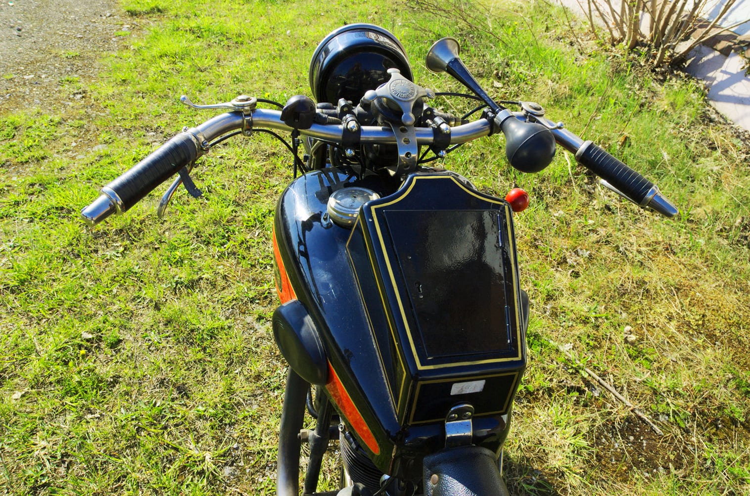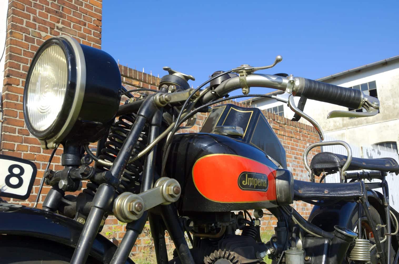 Voor het modeljaar 1927 bood Imperia een Sportmodel met dit MAG-motorblok, inclusief dubbele uitlaatpoorten, aan voor 1.425 ‘Reichsmark‘. In de daar op volgende jaren daalde de prijs rustigjes aan tot 1.290 RM. In die tijd was dat voor een zware motorfiets, en in die tijd was een halve liter machine echt nog een zware jongen, een mooie prijs, temeer omdat de eencilinder een echt moderne kopklepper was. In het eerste productiejaar had de machine nog een open frame met een ingestoken tank, maar al een jaar later kreeg de Imperia een nieuw, modern frame waarmee het (hoge) vermogen nog beter op de weg gebracht kon worden. Op de Berlijnse motortentoonstelling aan het eind van 1928 presenteerden de mensen uit Bad Godesberg de 500 H ofwel de 500 Sport, met zijn gesloten dubbele wiegframe dat volgens een speciaal procedé hardgesoldeerd was en trots een moderne zadeltank droeg. Die tank was eerst nogal hoekig vorm gegeven, maar verloor zijn scherpe kantjes al het jaar na de introductie. Dat maakte de Imperia veel mooier. In reclametaal zoemde Imperia over de nieuweling: “Wat een enorm sportieve krachtpatser, elegant, mooi gevormd en robuust. En nu voorzien van een zadeltank en een nog beter frame. Betrouwbaar genoeg voor snelle, lange ritten en reizen. Een topstuk voor een groot publiek, voor een scherpe prijs”. Andere folderteksten spraken over de verstandige beslissing een eencilinder te kopen bij een merk dat alleen eencilinders leverde. Dat voorkwam een gevaarlijke verdeling van de aandacht van de leverancier. En daar profiteerde de klant dan weer van. YES! “Meer kwaliteit voor minder geld” was ook een sterke.