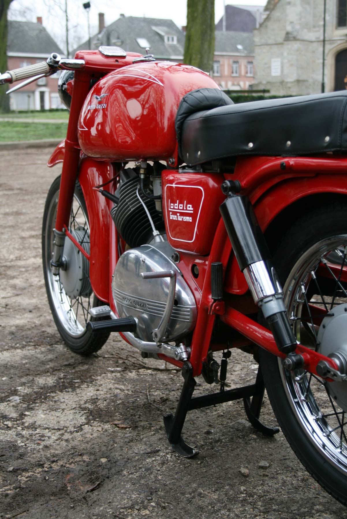 Die is al een hele tijd in het bezit van de huidige eigenaar. In 1984 heeft hij een BSA B31 geruild voor deze Guzzi Lodola. Hij wist toen nog helemaal niet zoveel af van oude Guzzi ééncilinders en van een Lodola had hij nog nooit gehoord, laat staan dat hij er op gereden had. Enkel de beroemde Falcone deed ergens een belletje rinkelen maar daar had je dan ook alles mee gezegd. Zijn vrienden verklaarden hem in ieder geval voor gek, want die B31 vonden ze allemaal waardevoller. De Guzzi bleek echter een fantastische motor. Altijd startklaar, betrouwbaar, pittig en met een goede wegligging. De jaren daarop bracht de Lodola hem overal trouw naartoe, zonder haperen. Bijna altijd was hij in die tijd op oldtimerritten zowat de enige met een Italiaanse motor. De laatste jaren is daar wel wat verandering in gekomen. In de loop van de negentiger jaren werd het blok gereviseerd: nieuwe lagers voor de krukas en de versnellingsbak, cilinder geboord en kleppen vernieuwd. Afgezien van de kleine probleempjes die iedereen met een motor van toch al bijna vijftig jaar oud tegenkomt, is hij nog altijd even betrouwbaar als vroeger. De kilometerteller staat nu op 66.800 km en de motor is nog steeds probleemloos.