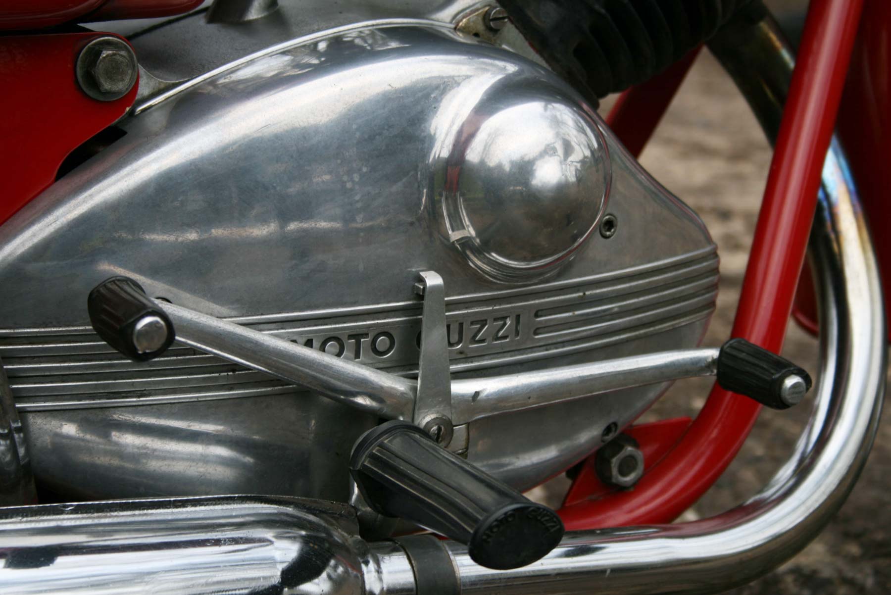 Vooral de wegligging en de stuureigenschappen scoren goed en de heel korte draaicirkel is de kers op de cake. De race-ervaring die men bij Moto Guzzi toch wel in huis had (de V8 maakte in die tijd furore op de circuits), is duidelijk in deze motorfiets verwerkt. De gewichtsverdeling en de positie van het zwaartepunt zijn voortreffelijk en de vering blijkt in staat om vrijwel alle oneffenheden te filteren. Enig puntje van kritiek is dat de voorvork ook wel hydraulisch gedempt had mogen zijn. Het schakelpedaal staat rechts, dus ‘op z’n Engels’ maar dat zijn ze in het oldtimerwereldje best gewend. De kick staat echter links, dat is eventjes wennen. Het model had natuurlijk heel wat succes en in de periode 1956-58 werden er niet minder dan 11.200 exemplaren van verkocht. En toch had men op de fabriek hoger gespannen verwachtingen. Dat die niet echt gehaald werden had ook te maken met het feit dat de betrouwbaarheid te wensen overliet: zo gaf de krukas problemen en de nokkenaskettingen hadden de gewoonte om te vlug te slijten met alle gevolgen van dien, gaande van gebroken kettingen tot verspringende tandwielen. Daarnaast slokte de technisch hoogstaande 175 behoorlijk wat productiekosten op en ondertussen was er dan nog Enrico Parodi, de toenmalige beheerder, die het familiefortuin verspeelde en daardoor het voortbestaan van de hele firma in het gedrang bracht. Men moest dus bezuinigen.