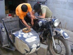 Ooit reed ikzelf een tijdje op zo’n fiets en al snel bleek dat de motor helemaal niet zo ideaal was voor iemand van mijn lengte. De zit is goed, maar de voetsteunen staan te ver naar voren. Dat probleempje kun je wel oplossen door deze op de achterste steunen te plaatsen, maar dan staat het rempedaal natuurlijk wat te ver naar voren, een andere rem en schakelset met naar achter geplaatste voetsteunen zou voor mij ideaal geweest zijn. Starten gaat probleemloos, het is tenslotte maar een twee-en-een-half en het blok draait snel mooi rond. Het uitlaatsysteem dempt haast naar huidige maatstaven. Maar gelukkig kan het binnenwerk van de demper worden verwijderd met haast verbluffende resultaten. Je zou bijna denken dat het een 500 cc machine is. Het blok ziet er dan ook vrij zwaar uit. Vooral wanneer je vanuit een laag toerental de kraan open draait komt er een heerlijke roffel naar buiten, iets wat ik nog maar bij weinig andere machines heb gehoord. Door het lage gewicht stuurt de machine als een echte fiets, korte bochten of lange, het gaat allemaal even vlot. De remmen zijn vrij behoorlijk voor een motor van veertig jaar oud en je kunt gerust stellen dat hij ook in het hedendaagse verkeer nog vlot meegaat. En… hij verliest geen olie. Ook dat kun je niet van veel fietsen uit die tijd zeggen.