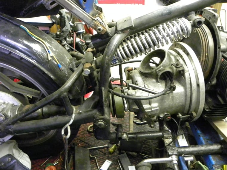 En als het dan over gedateerd spul – waardeloos spul – gaat dan is het idee om dan maar wat zaken pas te maken gauw geboren. Eerst met een Dnepr hart. Hij leek toen al best aardig. Toen liep ik tegen dat DAF blok aan. Alleen zitten er tussen eerste idee en eerste klappen best een paar dagen..