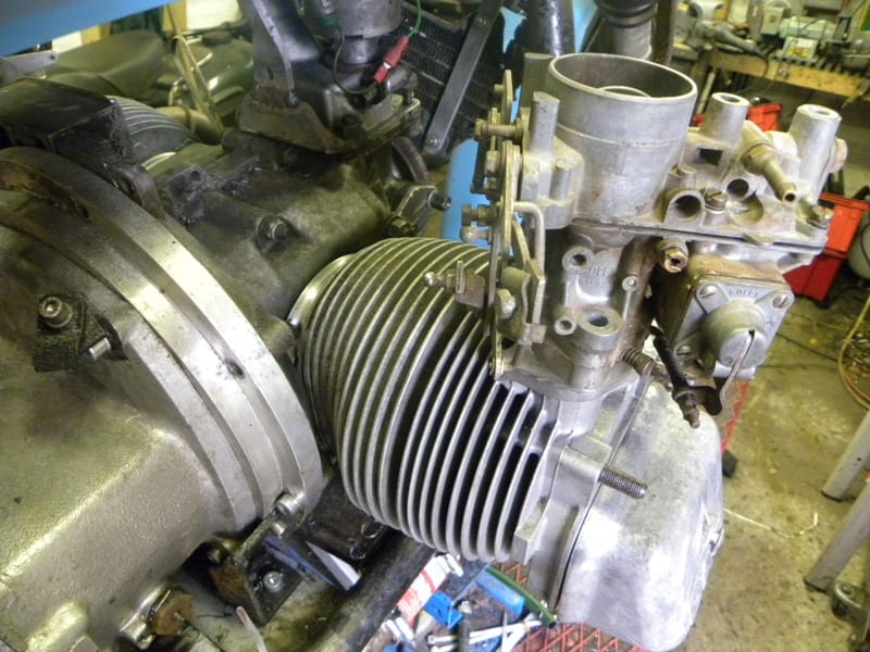 … het zouden carburateurs van een VW moeten zijn geweest zei de man die een hele bak ouwe carburateurs had liggen. Maar het ding wordt net zoiets als Terp, onze hond. Het is er eentje, maar wat in godsnaam? Er komt inelk geval een bovenlangs uitlaatsysteem op hebben we net bedacht…