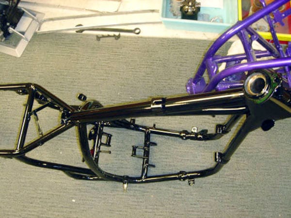 Poedercoating bestaat al bijna vijftig jaar en wordt in de industrie gebruikt om een harde, slijtvaste professionele finish aan produkten te geven. Ook in de motorwereld wordt het vaak toegepast, kijk maar eens naar je frame. Het principe is simpel: na voorbereiden en ontvetten van het component wordt een negatieve verbinding daaraan bevestigd en het poeder positief geladen, met als gevolg dat het poeder door het object wordt aangetrokken als bijvoorbeeld stof naar een tv-scherm.